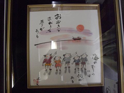 ここのご主人は画伯と言うことで店内にはいろいろえが飾られている。